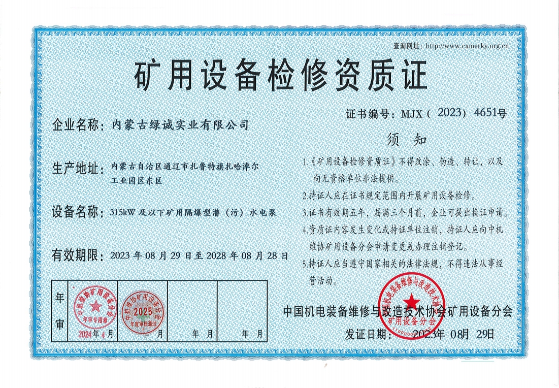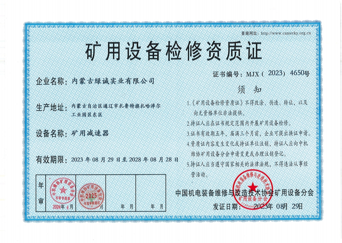 2018年我公司通過(guò)中國(guó)機(jī)電裝備維修與改造技術(shù)協(xié)會(huì)礦用設(shè)備分會(huì)審核并取得了9項(xiàng)礦用設(shè)備檢修資質(zhì)證書(shū)。公司本著“誠(chéng)信為本 質(zhì)量為先 全心全意為客戶 ”的服務(wù)理念,圓滿完成各個(gè)廠礦的機(jī)械維修及配套服務(wù),期待與您共同合作。